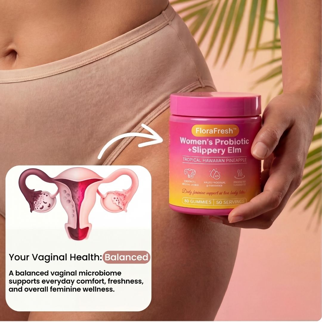 FloraFresh is a daily probiotic gummy formulated to support feminine balance, freshness, and overall comfort from the inside out. It combines clinically researched probiotics, prebiotics, and plant-based ingredients to help maintain a healthy vaginal microbiome.
